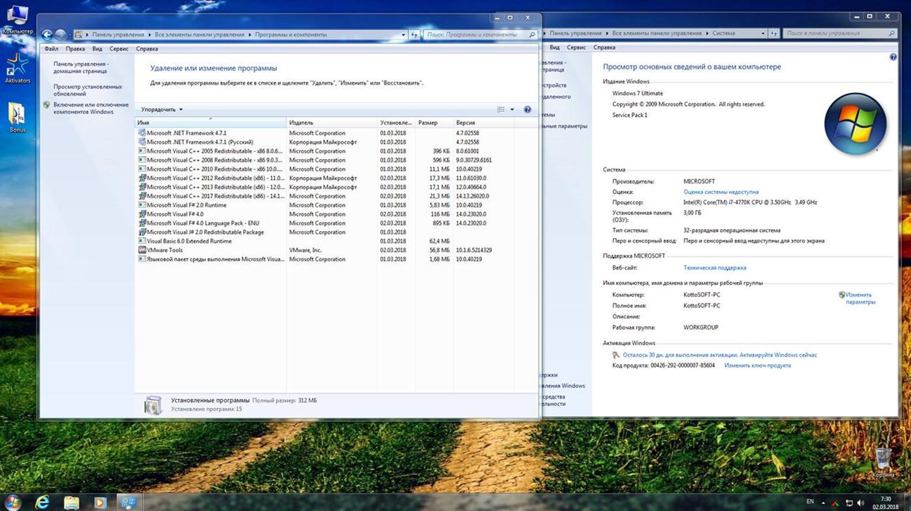 Скриншоты Windows 7 Ultimate KottoSOFT (x86\x64) (Rus) [v.4\2018] торрент: