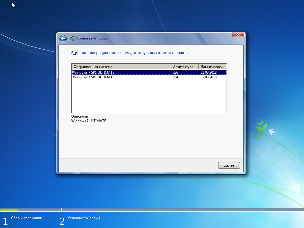 В сборке предоставлена возможность выбора желаемой версии и разрядности на начальном этапе установки.