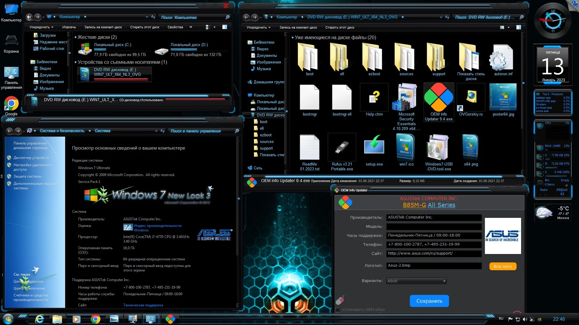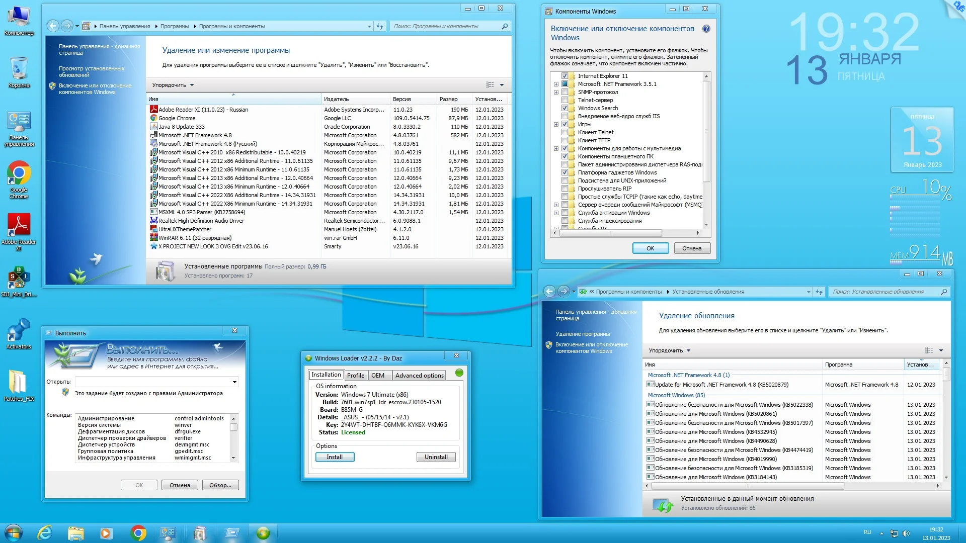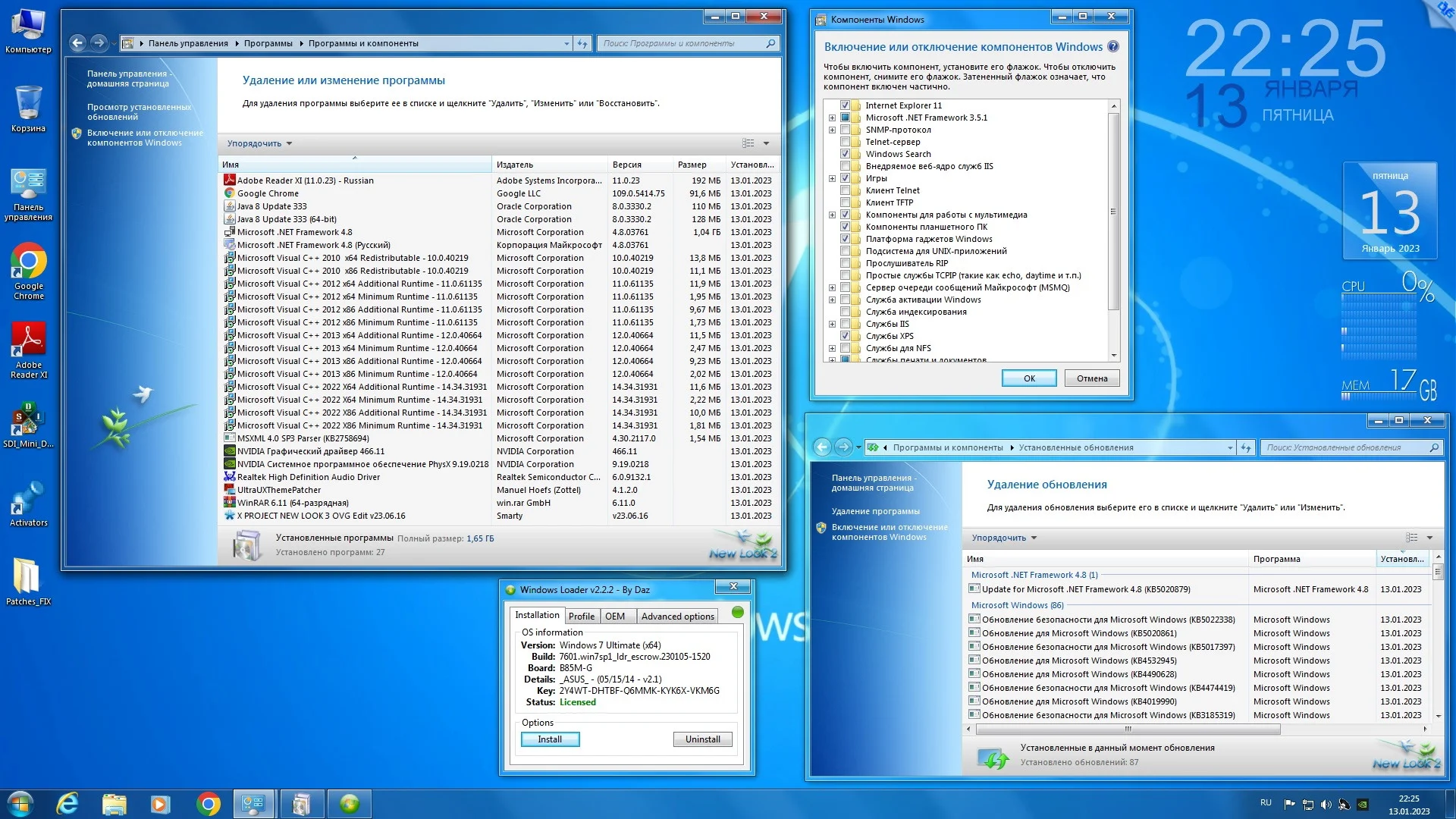 - Пакет оформления системы ""New Look 3 v16.06.23" от Smarty.- Google Chrome 109.0.5414.75 Stable (альтернатива браузера IE11).- WinRAR 6.11 ru x86/x64 - Microsoft .NET Framework 4.8 Final ru (обновл. по декабрь 2022 г.)- Java SE Runtime Environment 8u333 x86/x64- Adobe Reader XI 11.0.23 Ru- Microsoft Visual C++ 2010- - 2022 Repack (19.10.2022)- UltraUXThemePatche