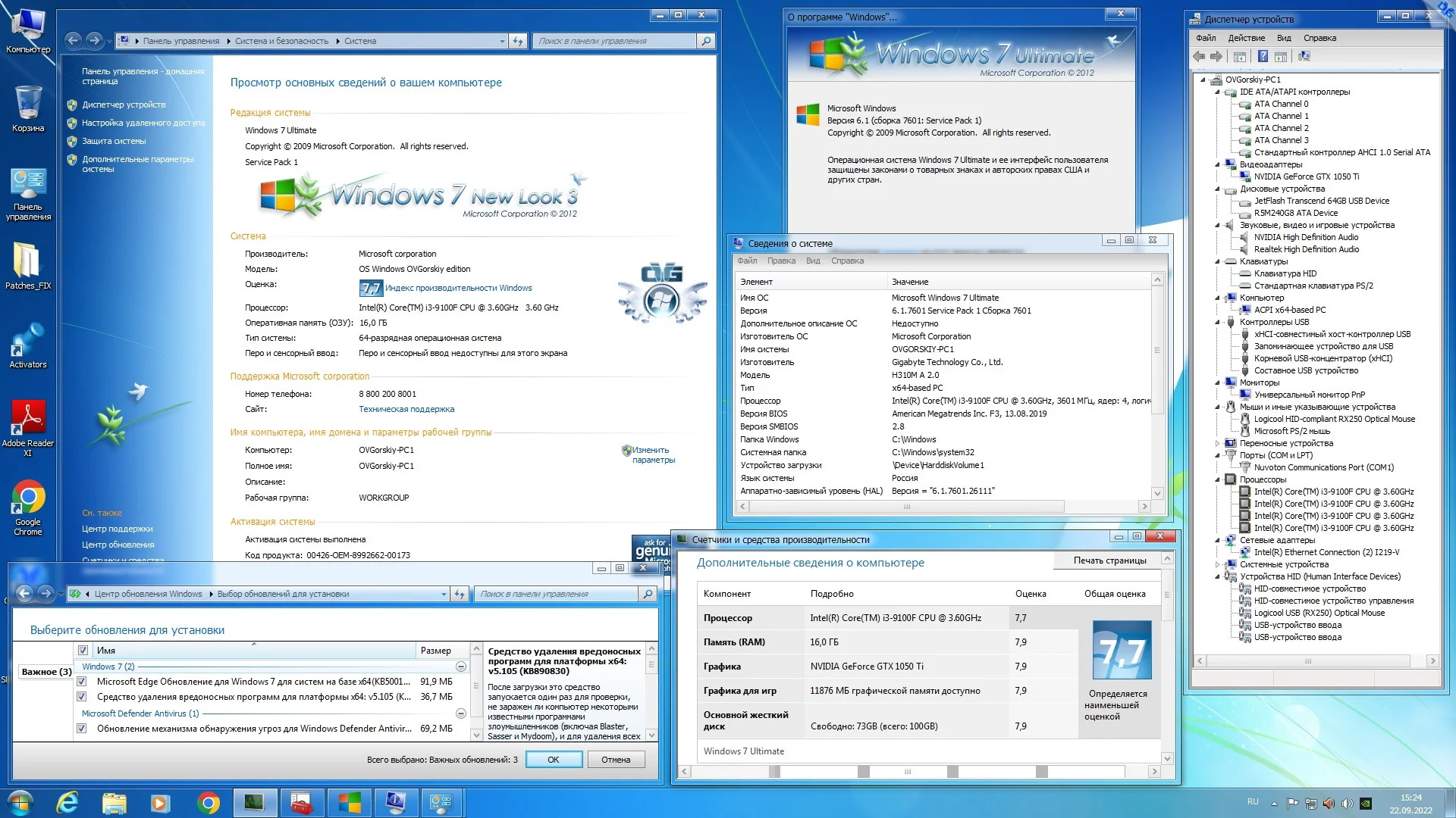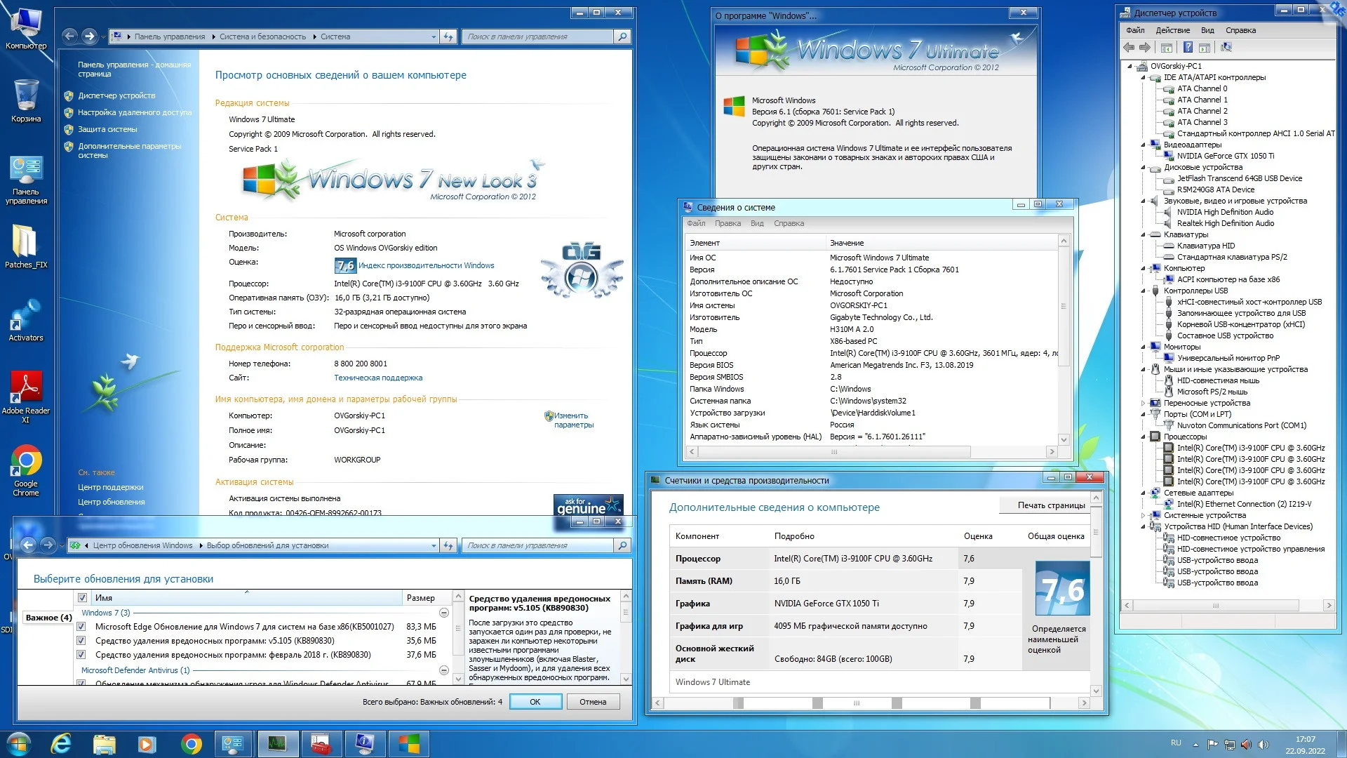 - Windows® 7™ с интегрированными обновлениями, оформлением в светло-голубом стиле и ручной установкой на 2 DVD.