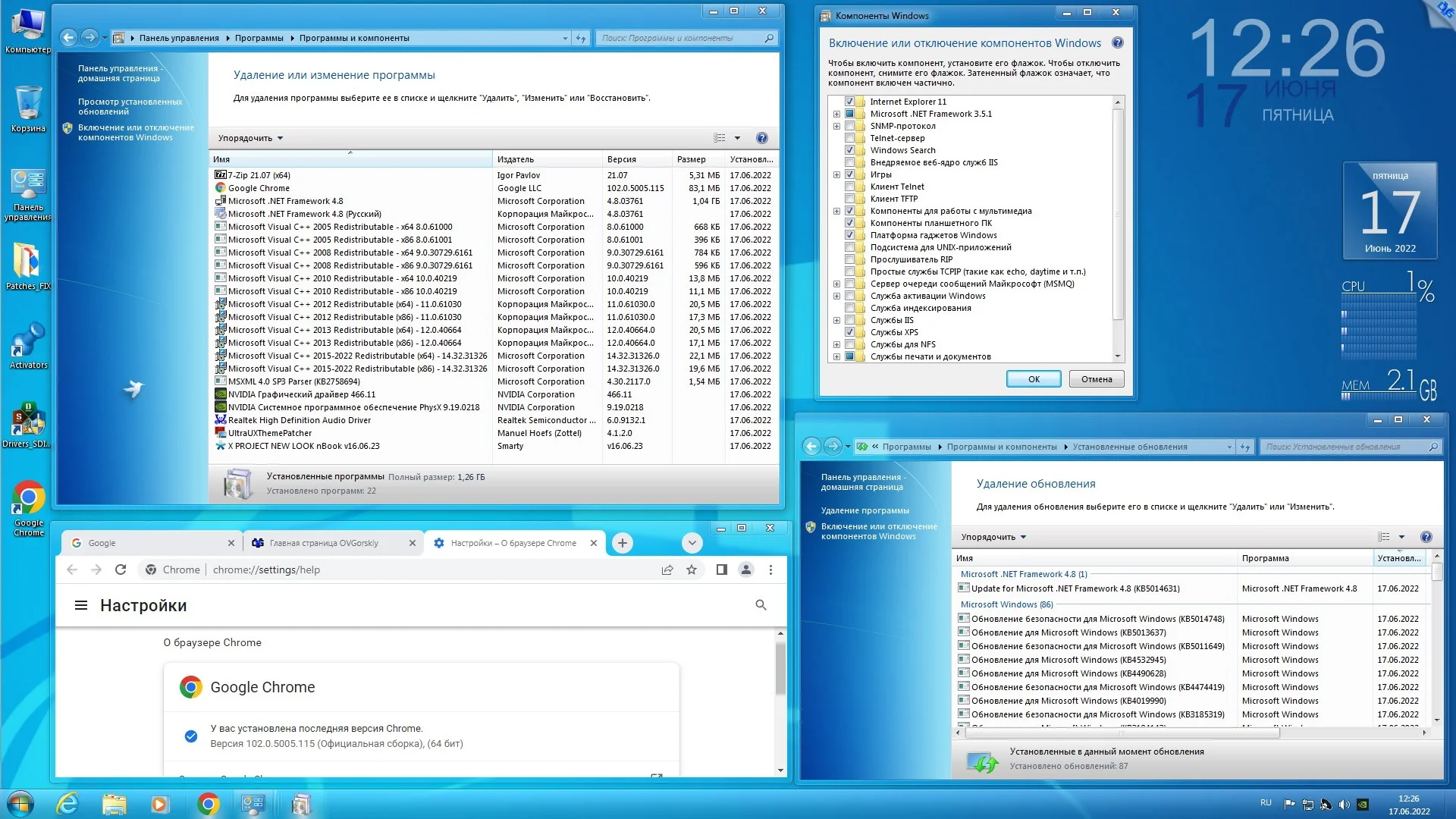 Windows 7 Ultimate Ru x86/x64 nBook IE11 by OVGorskiy 06.2022 1DVD Сборка максимальной версии Windows 7 (SP1) с интегрированными обновлениями и дополнениями для установки на x86/x64. Системные требования: Процессор: 1 ГГц или выше, поддержка PAE, NX и