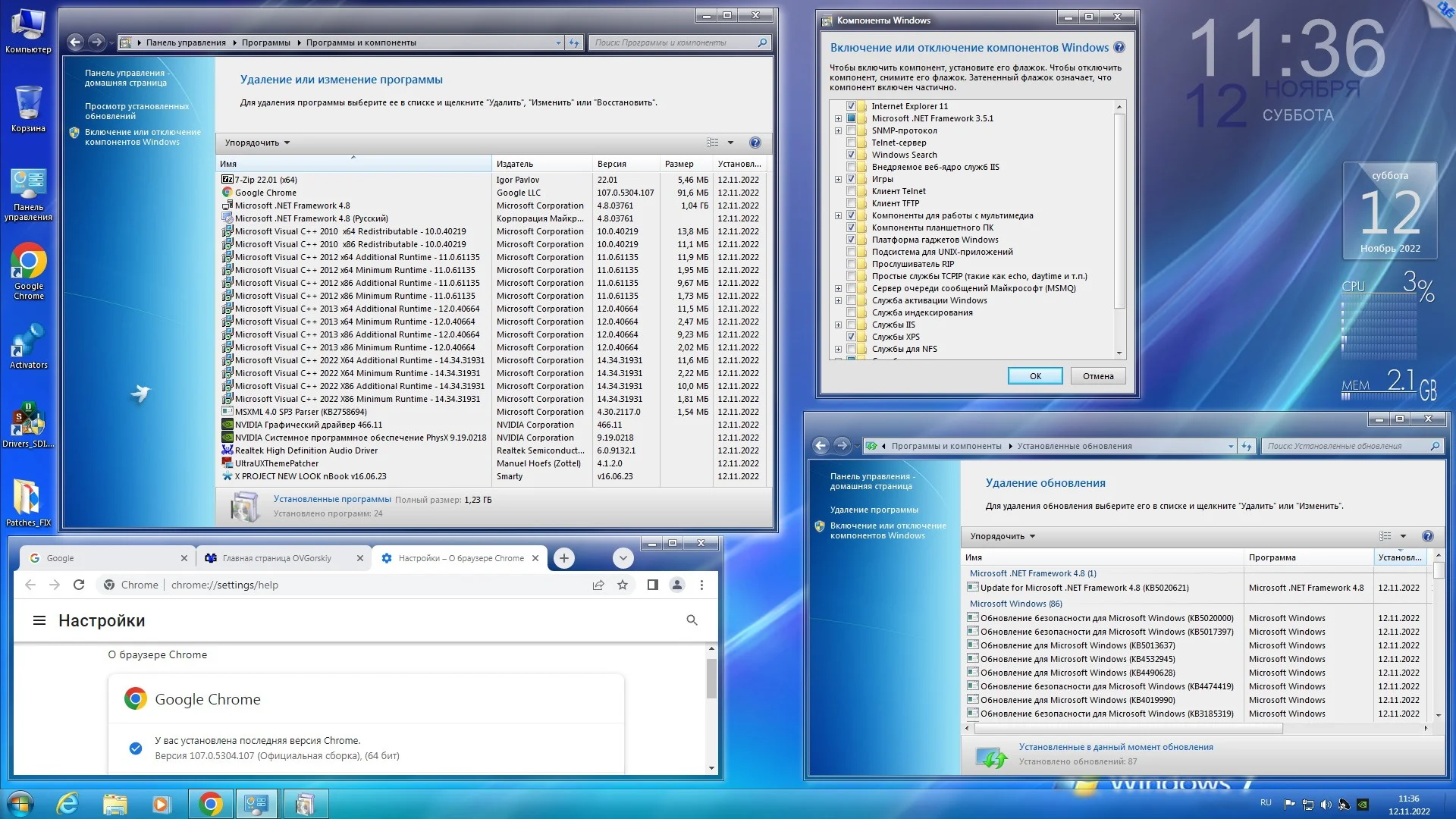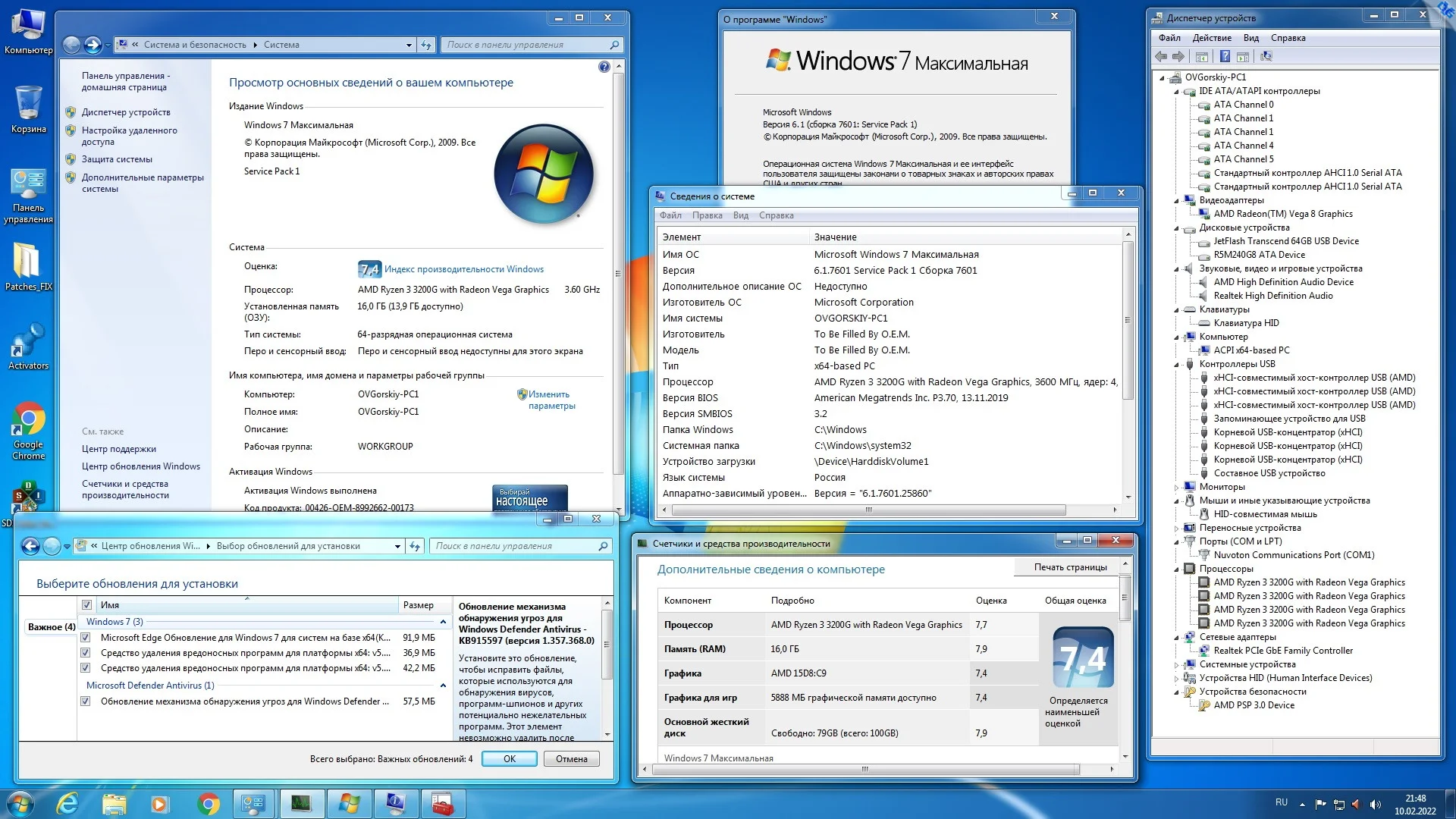 Версия: 6.1.7601.26221 Service Pack 1 Сборка 7601, оформлена в светло-голубом стиле с интегрированными обновлениями и дополнениями для ноября 2022 года.