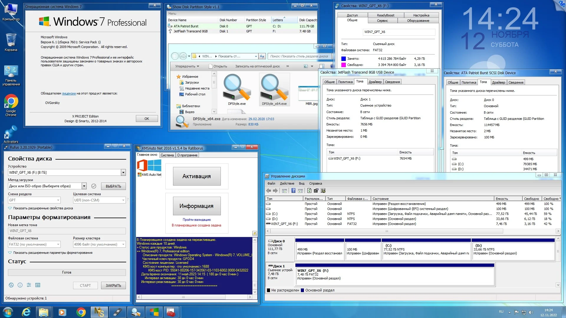 Дополнительно интегрированная профессиональная 64-битная редакция для установки на GPT диски, с обновлениями IE11 x86/x64 v11.0.285 и SP2.