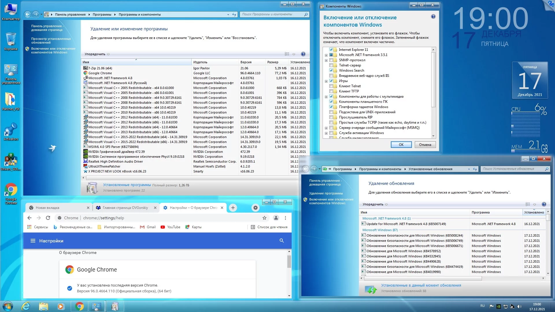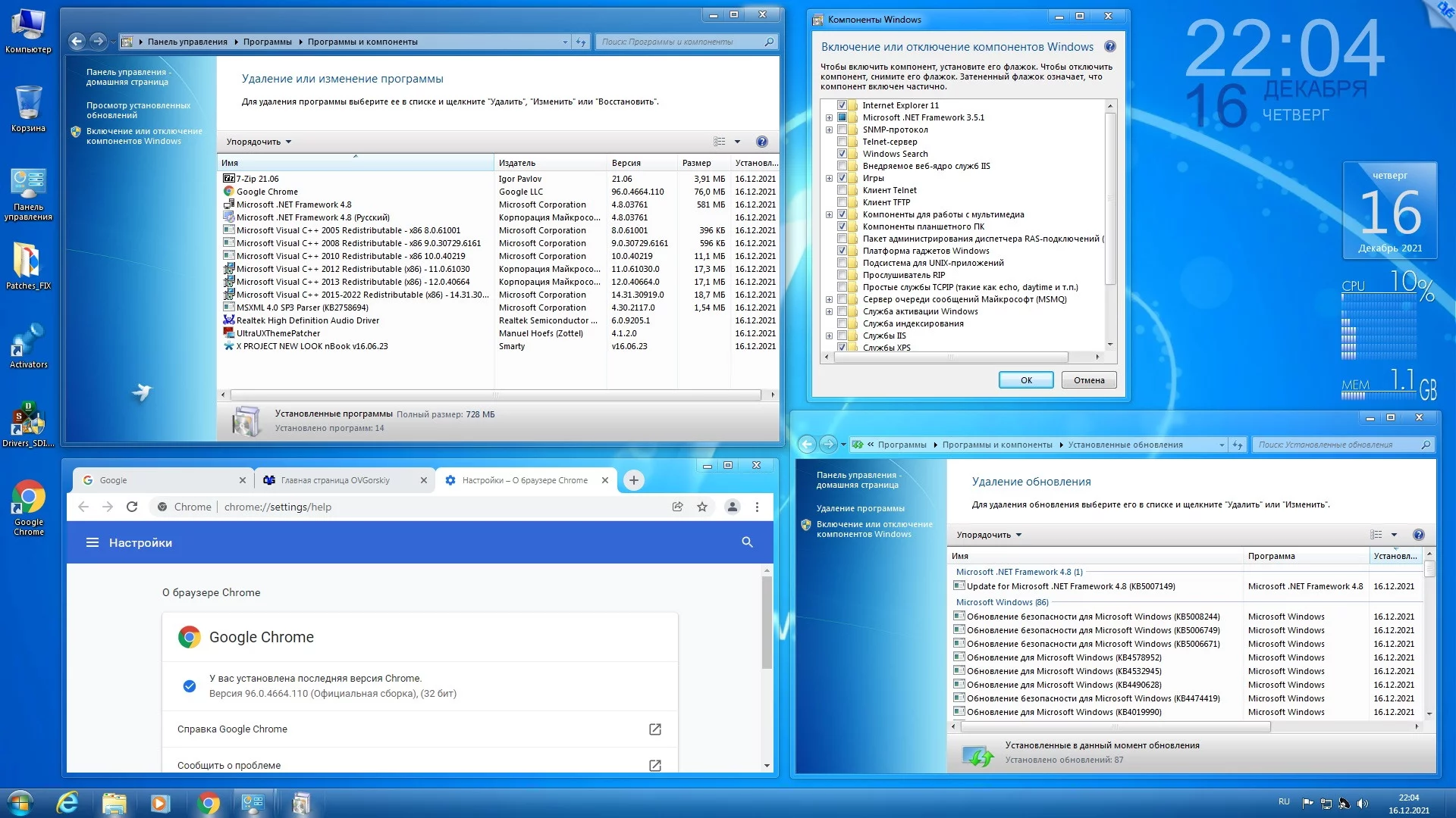 - Пакет оформления "Windows 7 NEW LOOK nBook v16.06.23" от Smarty. - Google Chrome 96.0.4664.110 Stable x86-x64 Ent. - 7-Zip 21.06 ru x86/x64. - Microsoft .NET Framework 4.8.2 x86-x64 Ru (11.2021). - Microsoft Visual C++ 2005...