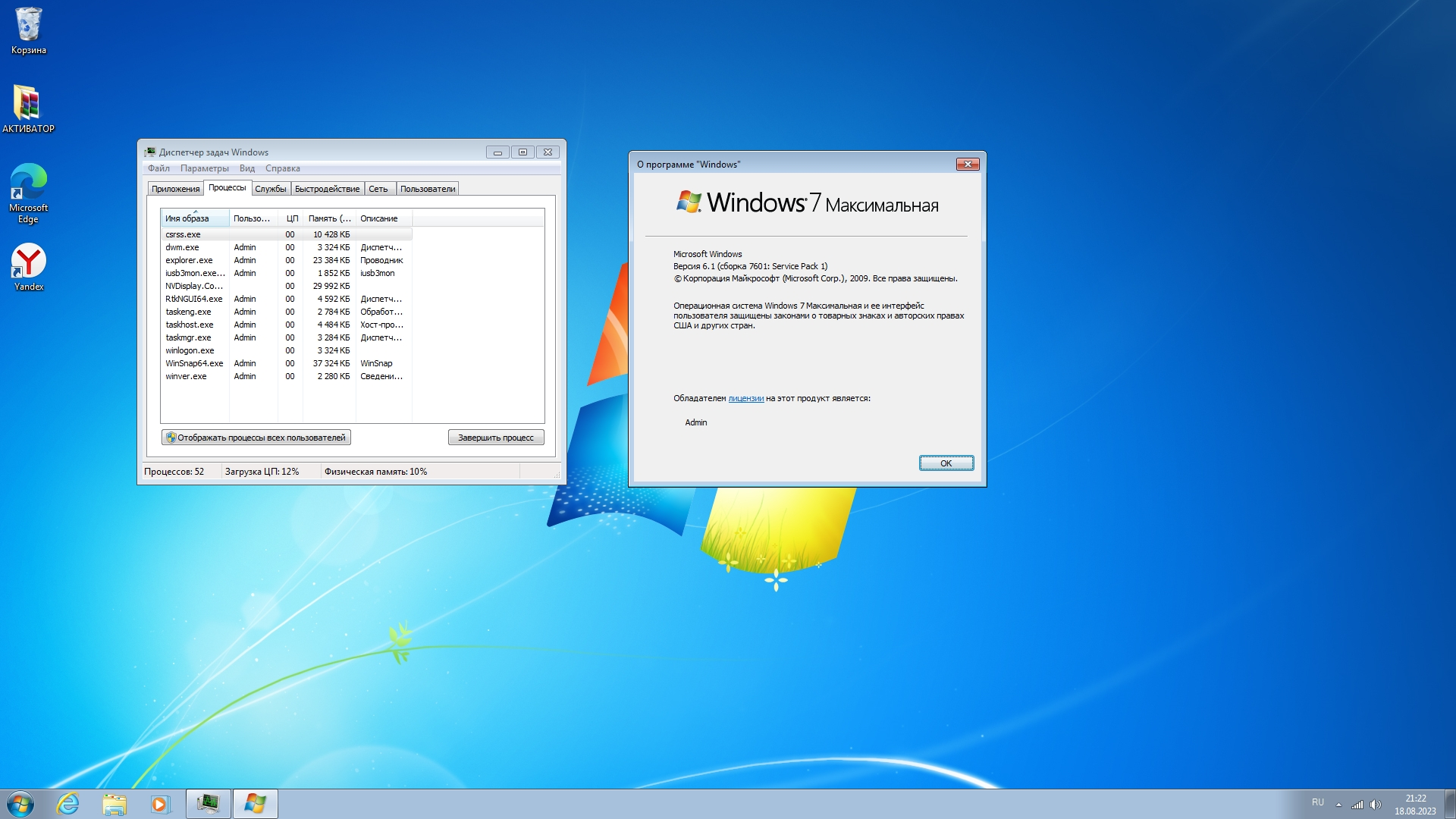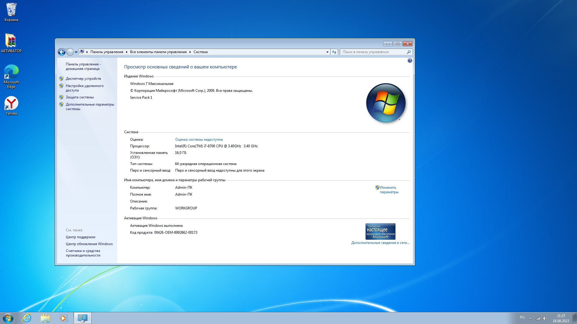 Обновленная версия Windows 7 Ultimate x64, выпущенная в августе 2023 года. Процессор должен быть не менее чем 1 ГГц. Максимальное количество свободного места на жестком диске
