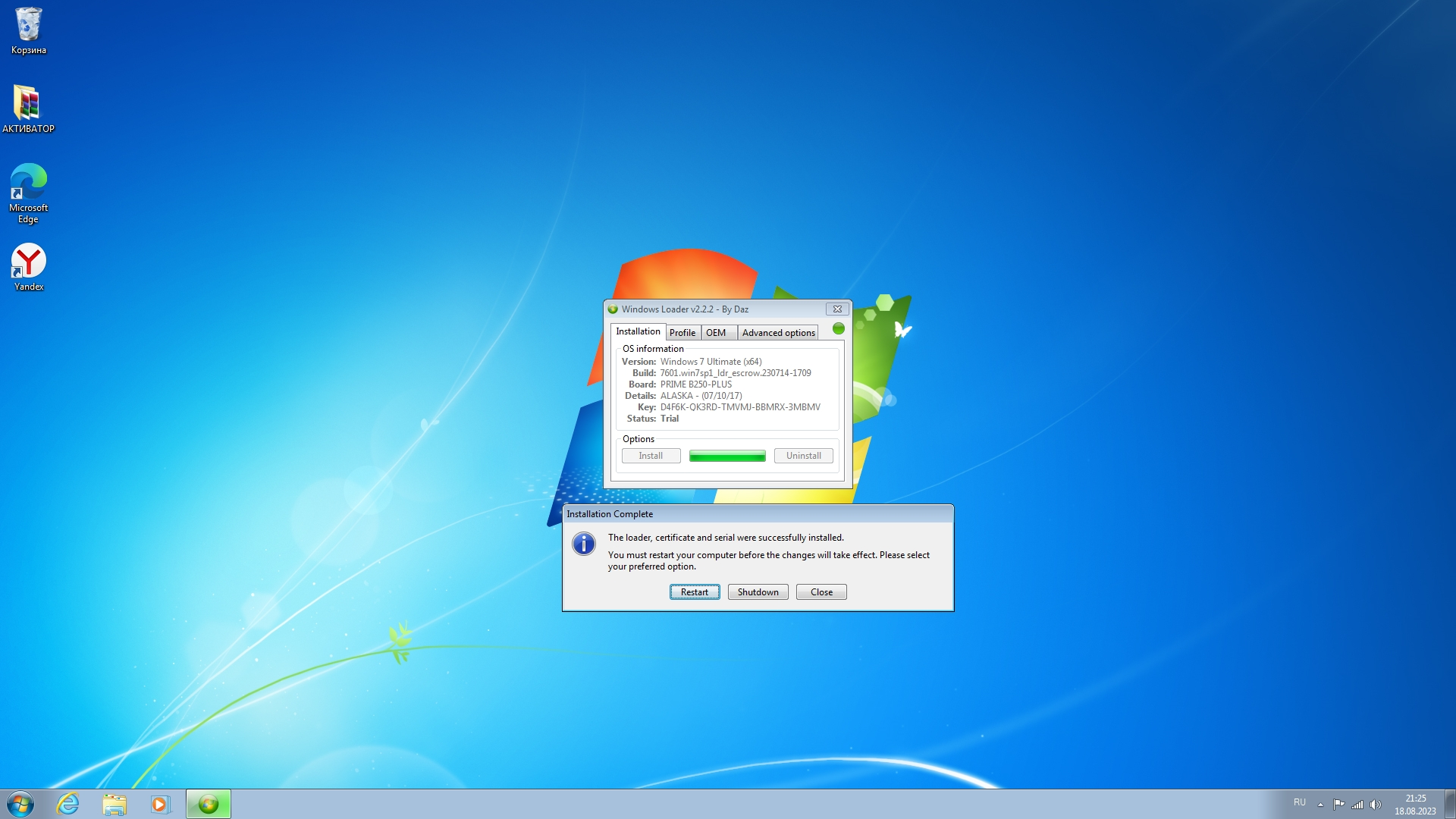 - Не рекомендуется использовать , , . Примите активатор Windows Loader 2.2.2 By DAZ и AAct Network в архиве, пароль