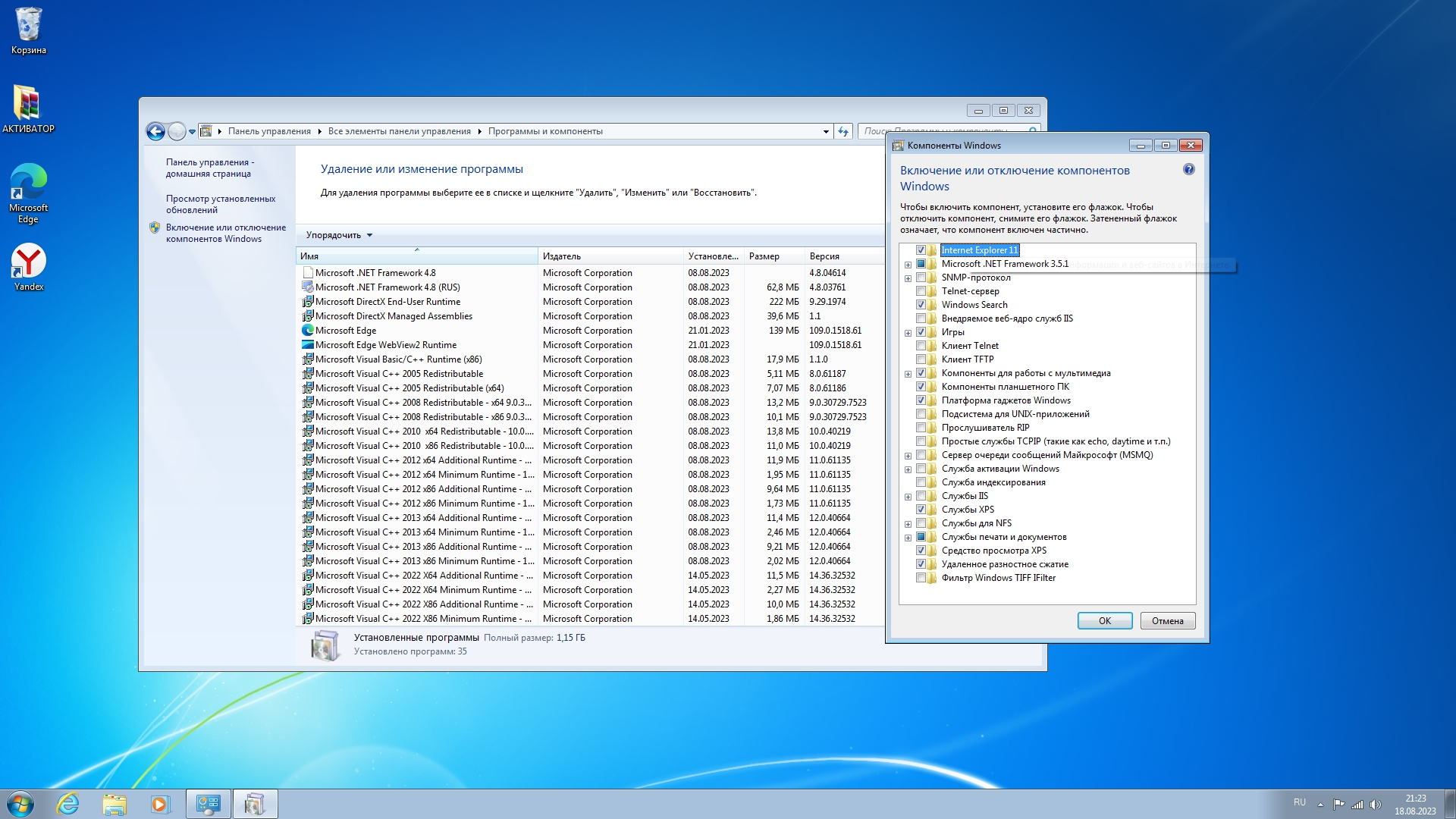 - Интегрированы DirectX 9c (Update June 2010), Edge Chromium, WebView2, Visual C++ 2005-2022 и .Net Framework 4.8, Yandex браузер, WinRAR.