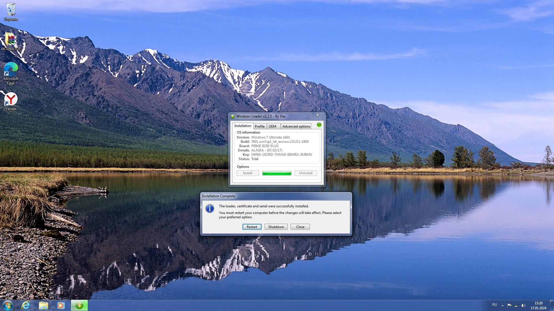 - На рабочем столе папка с активаторами Windows Loader 2.2.2 By DAZ и AAct Network в архиве