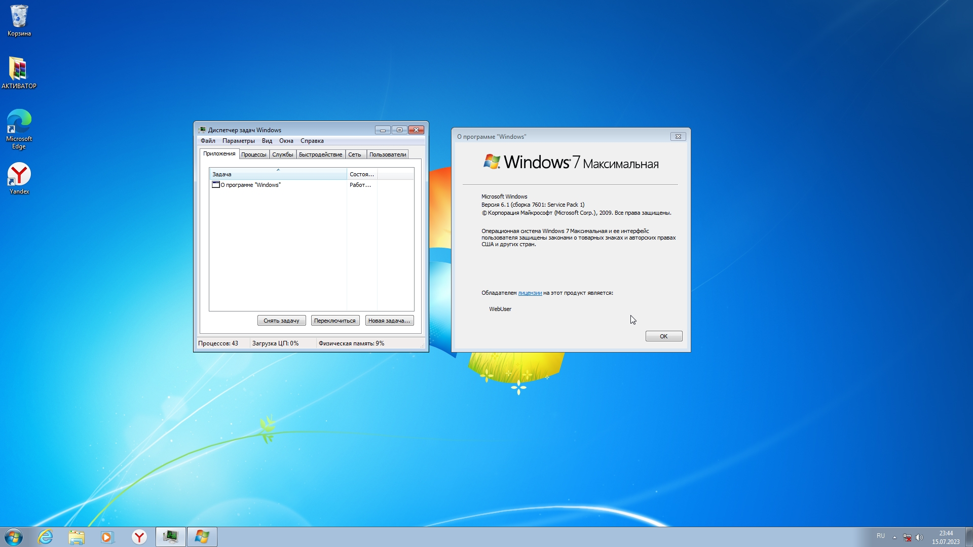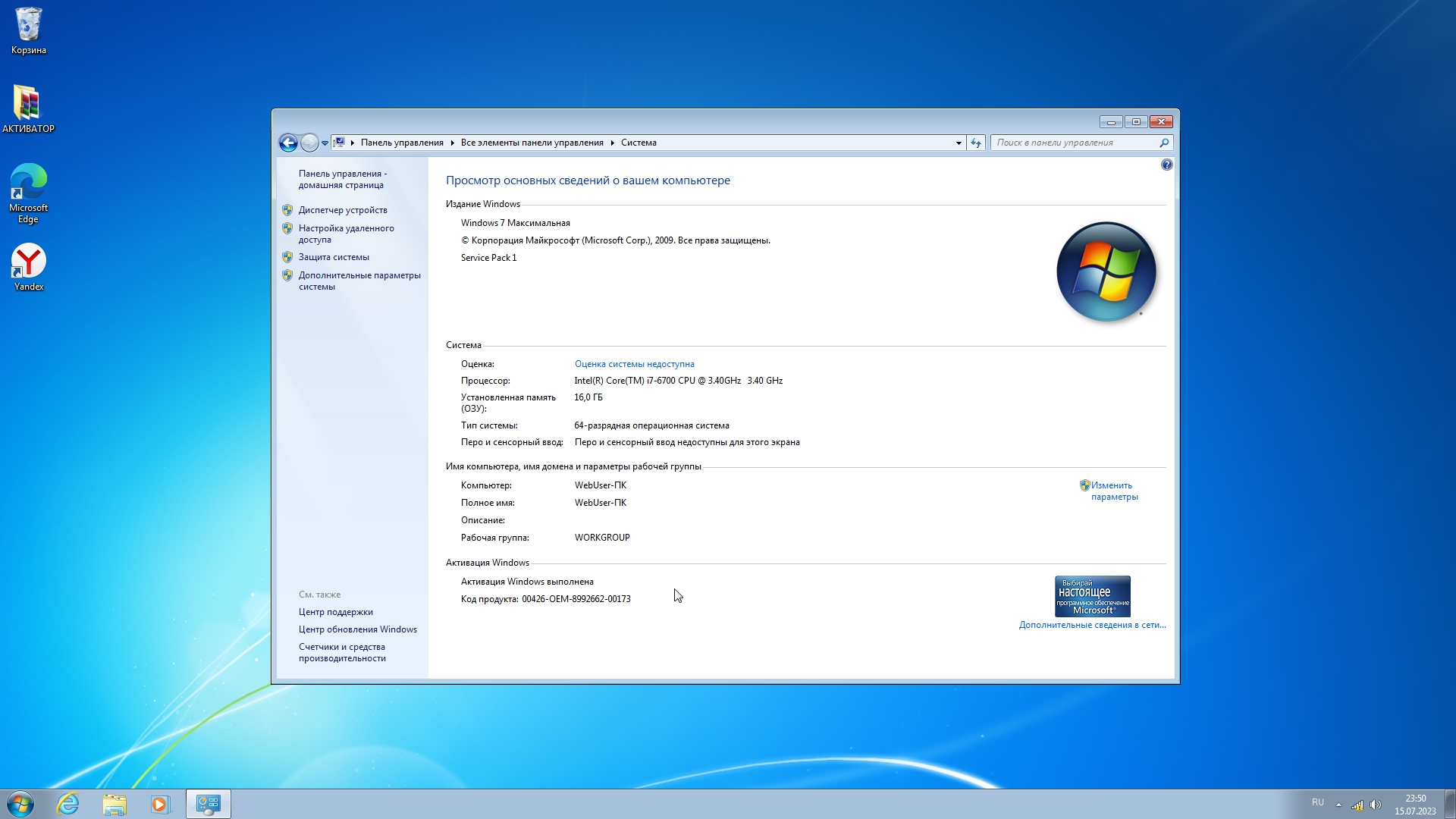 Обновленный образ операционной системы Windows 7 Максимальная, русский язык, Июль 2023 года.