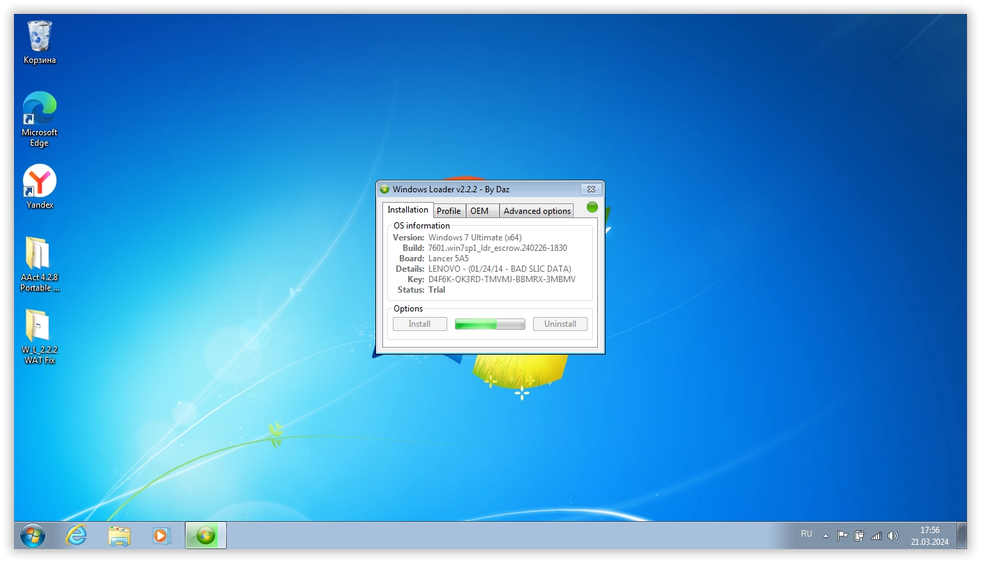 Windows 7 Ultimate x64 Update, Mar' 2024 Обновлен до версии 6.1.7601.27017 в марте 2024 года Системные библиотеки для корректной работы современных приложений и игр интегрированы Особенности: Интегрированы обновления по Март' 2024 года Интегрирован