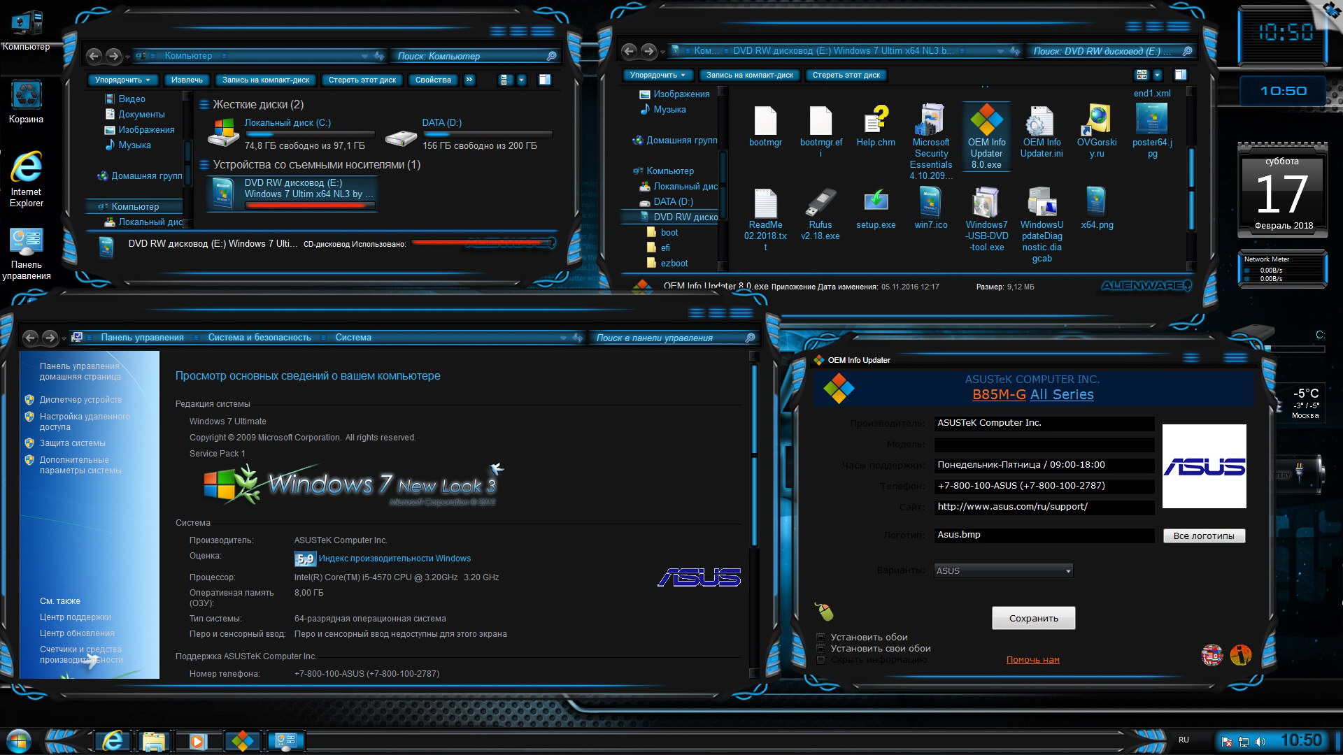 Дополнительно на диске содержатся программы для создания флешки, программа для смены OEM информации в свойствах системы, картинка обложки для DVD диска и постер сборки.