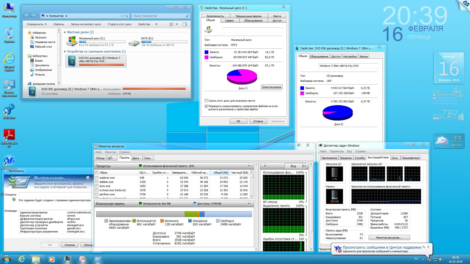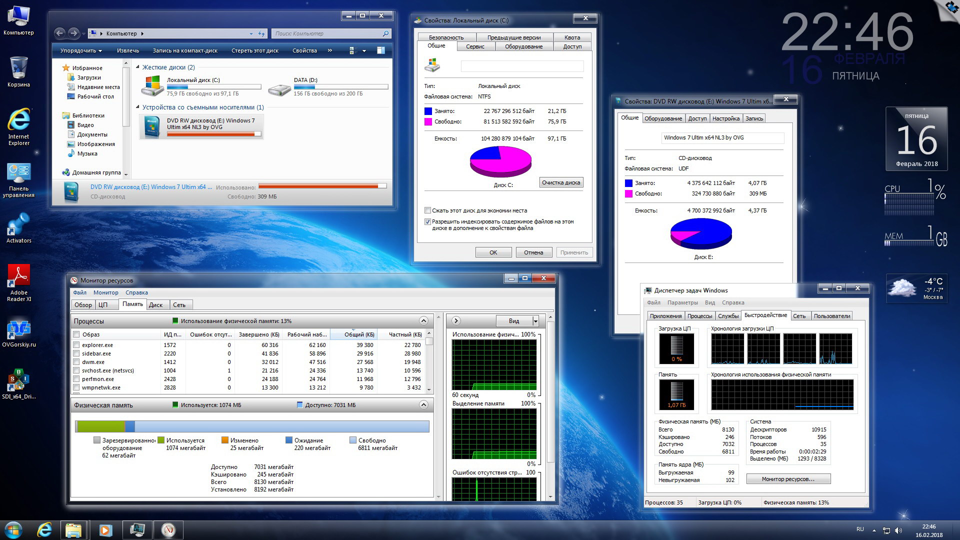 Скриншоты Windows 7 Ultimate x86/x64 SP1 NL3 by OVGorskiy 02.2018 торрент: