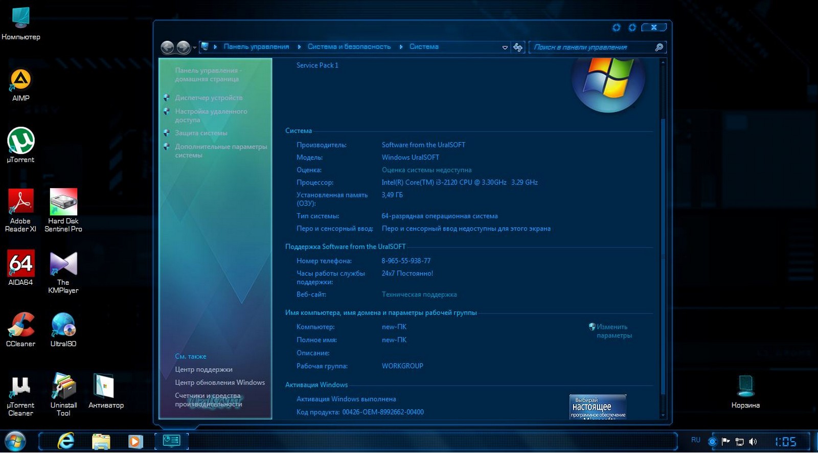 Скриншоты Windows 7x86x64 Максимальная Lite (Uralsoft) торрент: