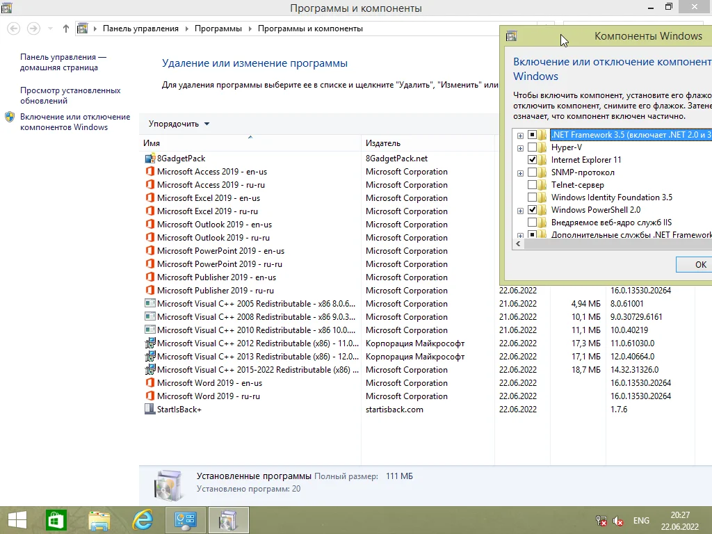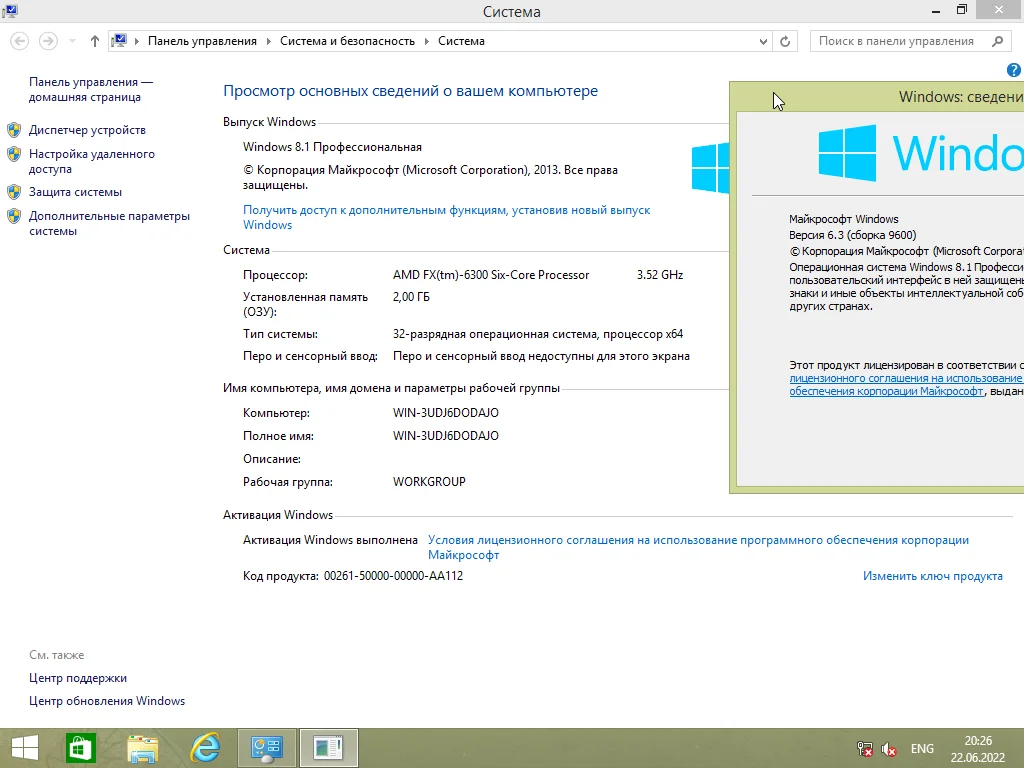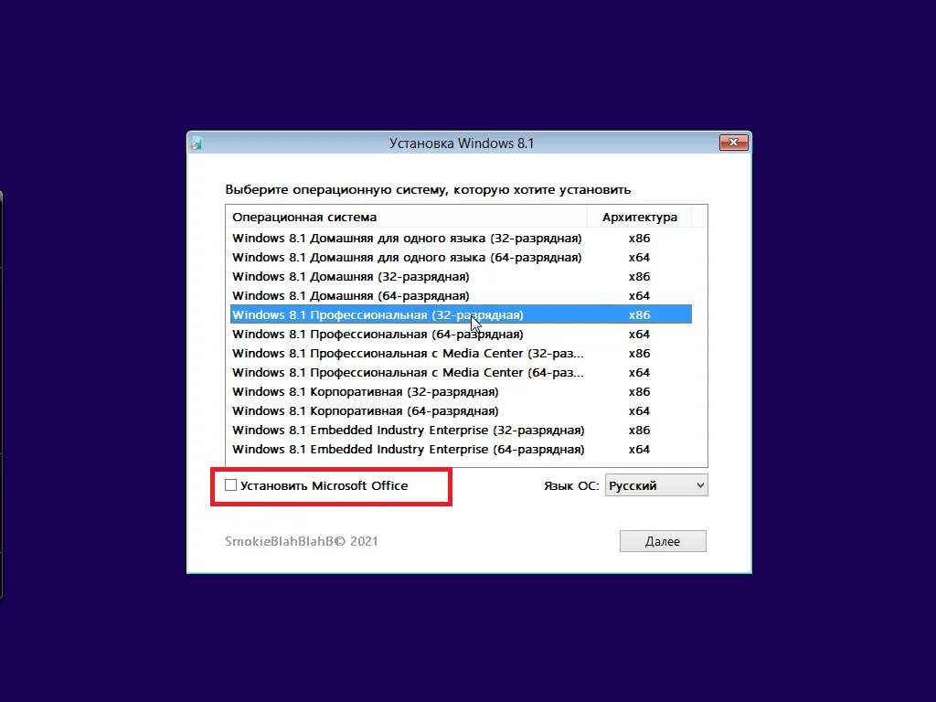Версия Windows 8.1 (русские и английские) с обновлениями до июня 2022 года, включая установку Office 2019 Pro Plus x86.