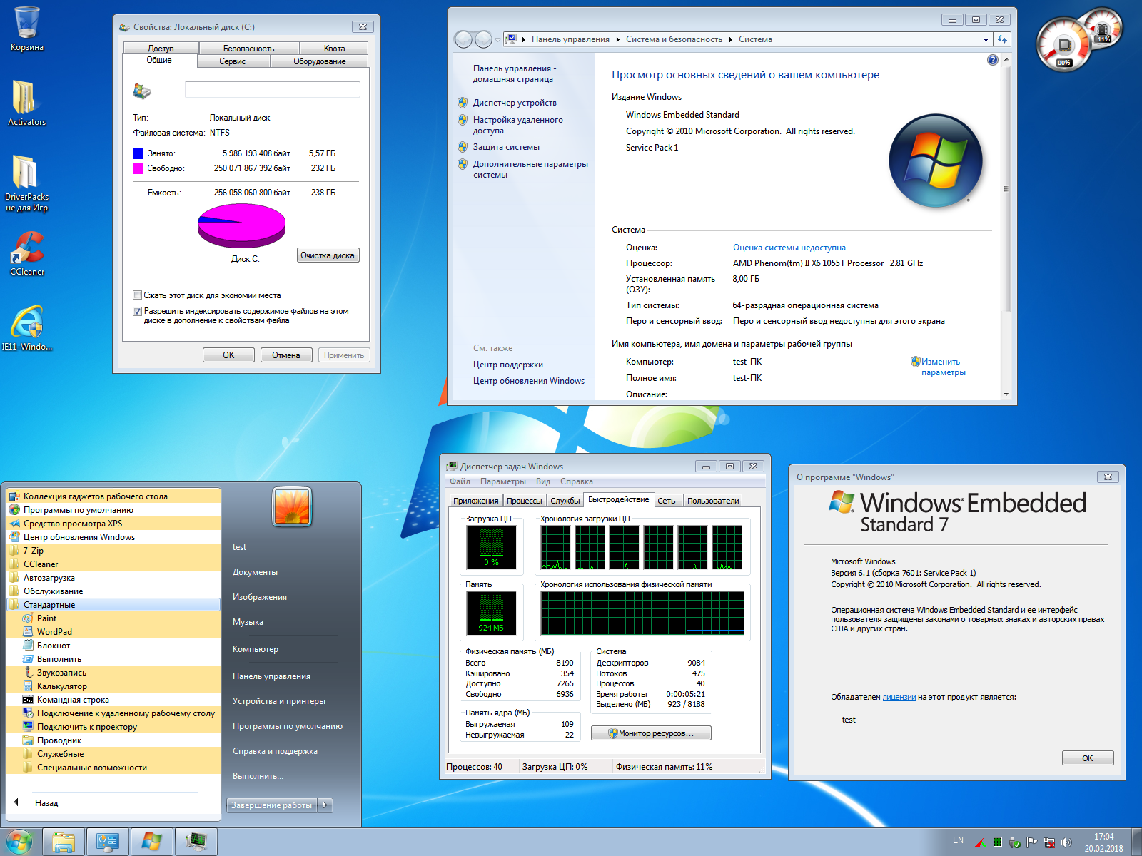 Windows Embedded Standard 7 SP1 «Small» обновлен и встроенных программ практически отсутствует.
