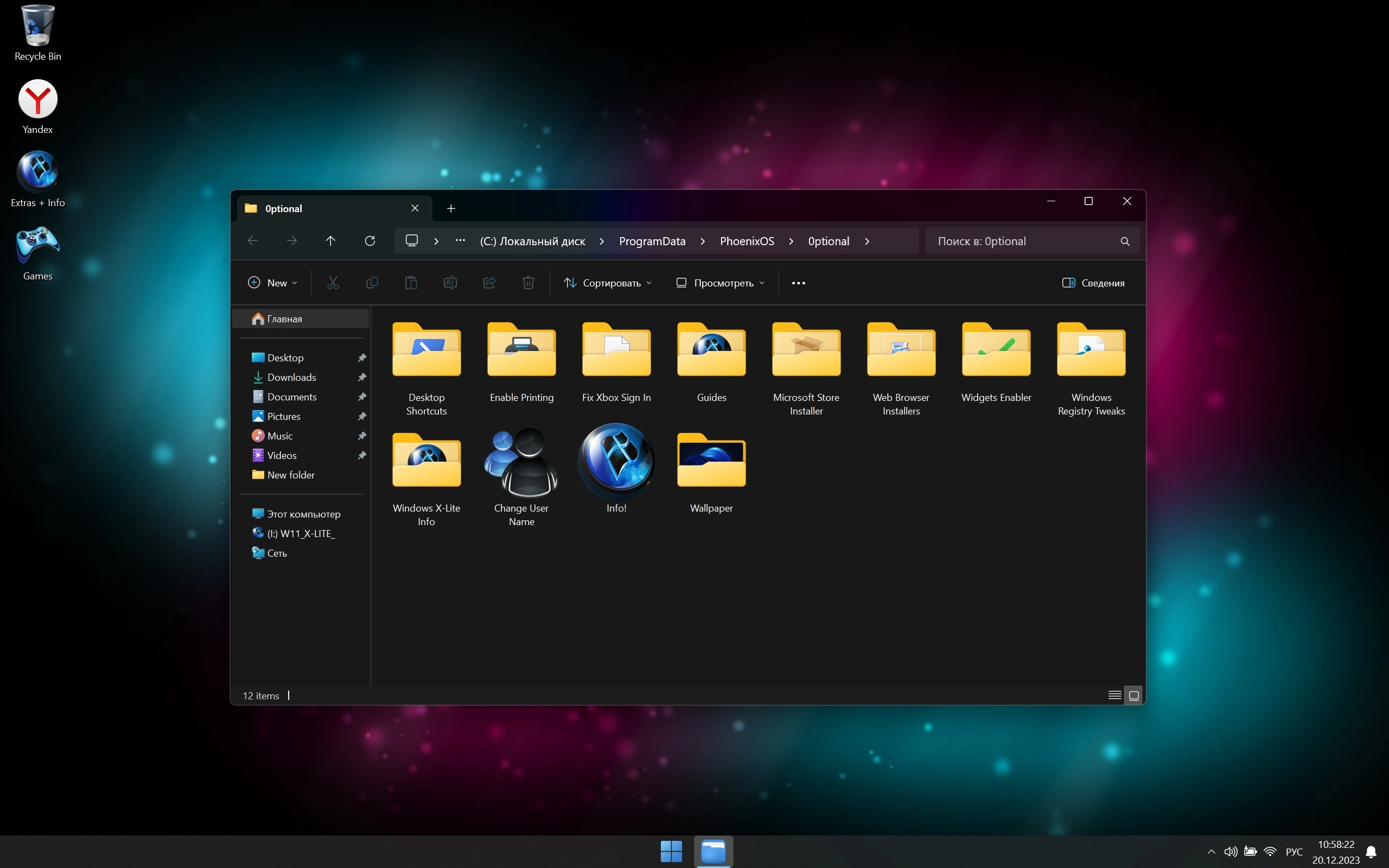 Windows X-Lite Optimum 11 23H2 Pro (22631.2792) Системные требования: Процессор: не менее двух ядер с тактовой частотой не менее 1 ГГц, ОЗУ 4 ГБ или более, место на диске 20 ГБ и больше, видеоадаптер DirectX 12. Особенности: Полнофункциональная