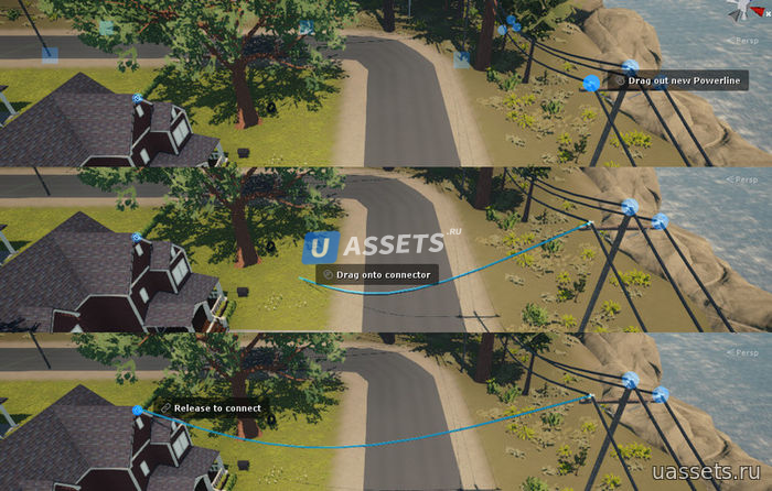 Инструмент редактирования для создания подвесных электрических или телефонных проводов за считанные секунды. Построен на основе интуитивно понятного редактора просмотра сцен щелчком мыши и перетаскиванием.