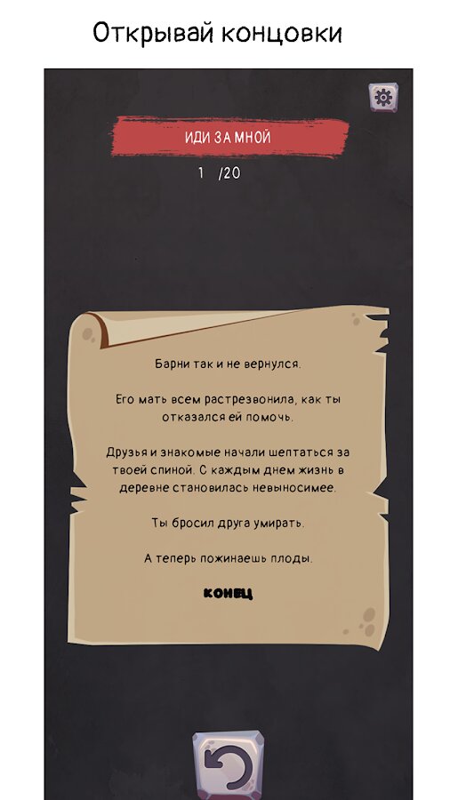 Данное приложение предлагает классический, но глубоко проработанный геймплей текстового квеста с несколькими важными аспектами:
