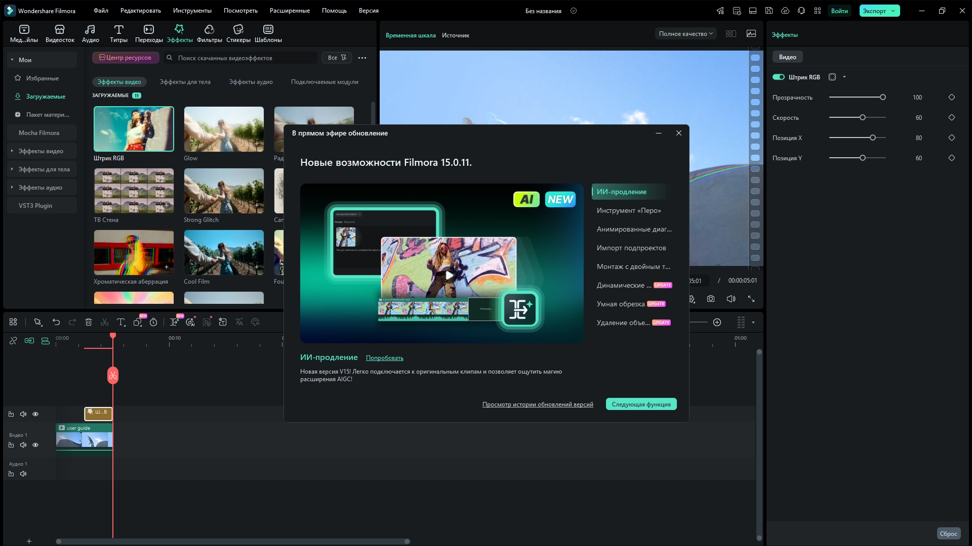 - Использование профессиональных визуальных эффектов и фильтров (более 30 готовых вариантов) для улучшения видео и фотографий.