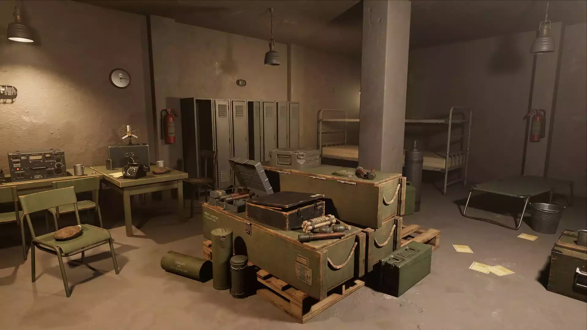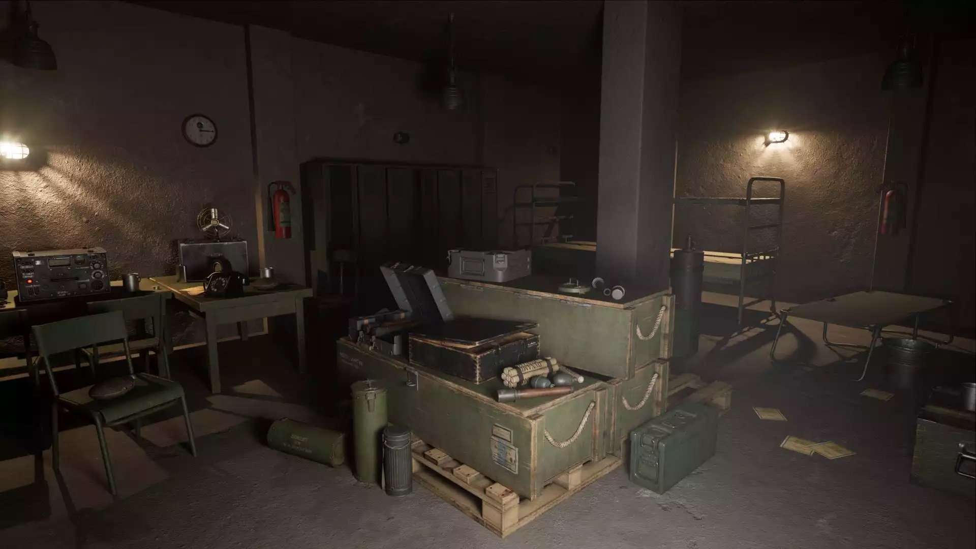 Немецкий бункер в обстановке Второй мировой войны. Этот пакет включает в себя около 40 исторически достоверных ресурсов. Ящики с боеприпасами, коробки, немецкая мебель, гранаты и т.д. Все ящики можно открывать. В основном для интерьерных сцен.