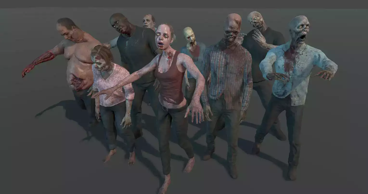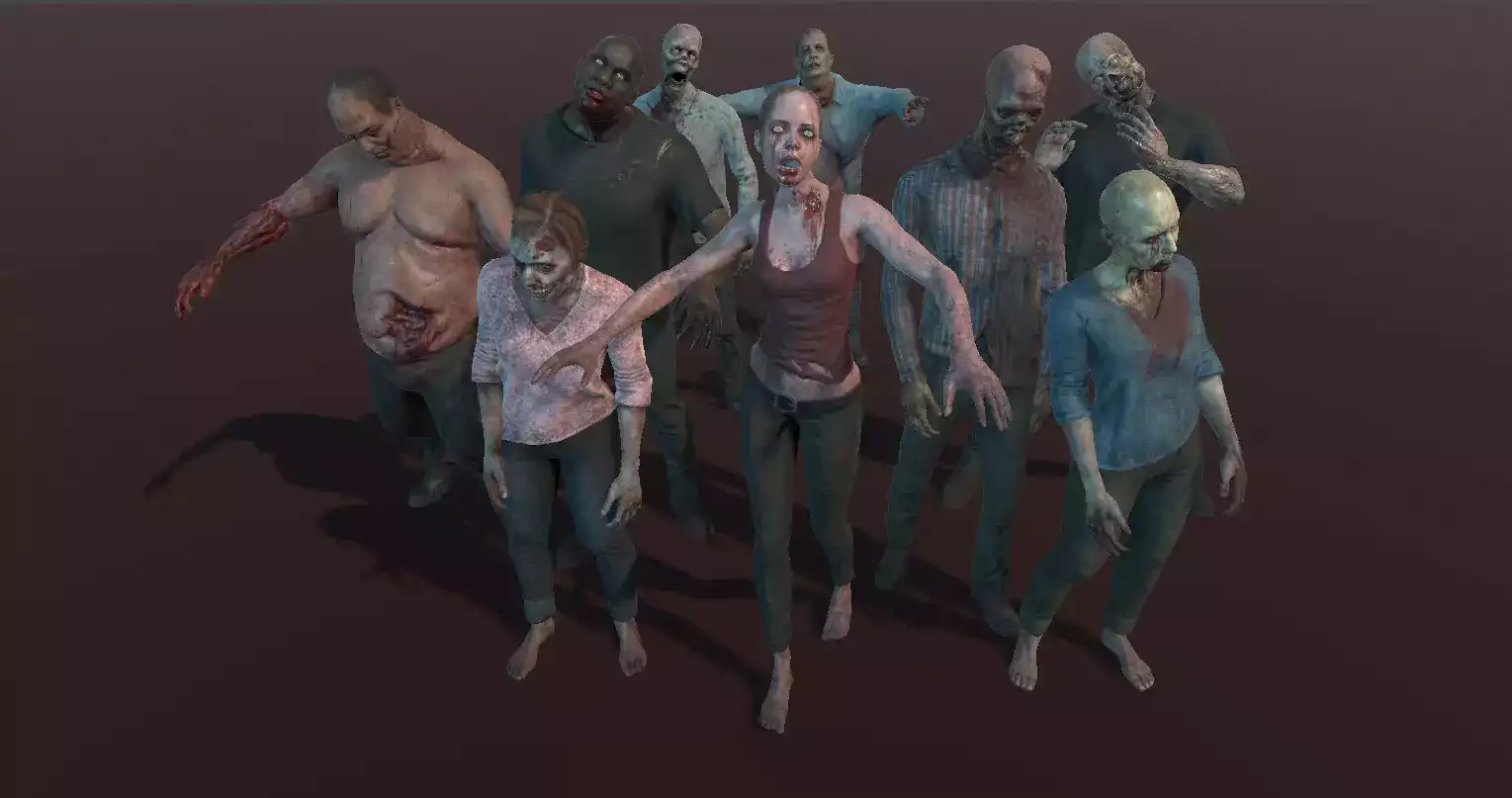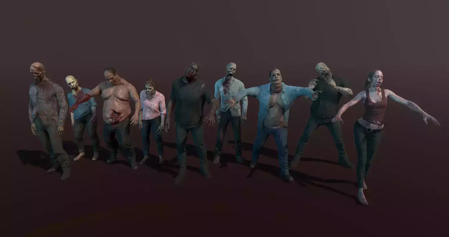 Набор из 5 моделей зомби, 4 из них с двумя скинами, всего 9 зомби.